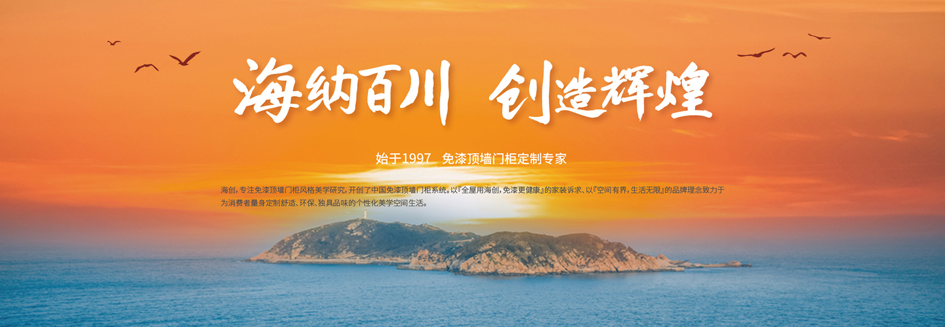 海創(chuàng),專注免漆頂墻門柜風(fēng)格美學(xué)研究,開創(chuàng)了中國免漆頂墻門柜系統(tǒng)。以『全屋用海創(chuàng),免漆更健康』的家裝訴求、以『空間有界,生活無限』的品牌理念致力于為消費(fèi)者量身定制舒適、環(huán)保、獨(dú)具品味的個性化美學(xué)空間生活。